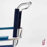 odborně restaurovaný originál, nový látkový potah z potažené režné stanoviny dle původního vzhledu, původní chrom vyleštěn, područky lakovány polyuretanem ve vysokém lesku dle původního odstínu