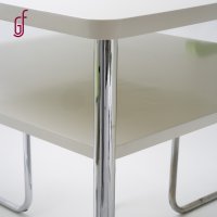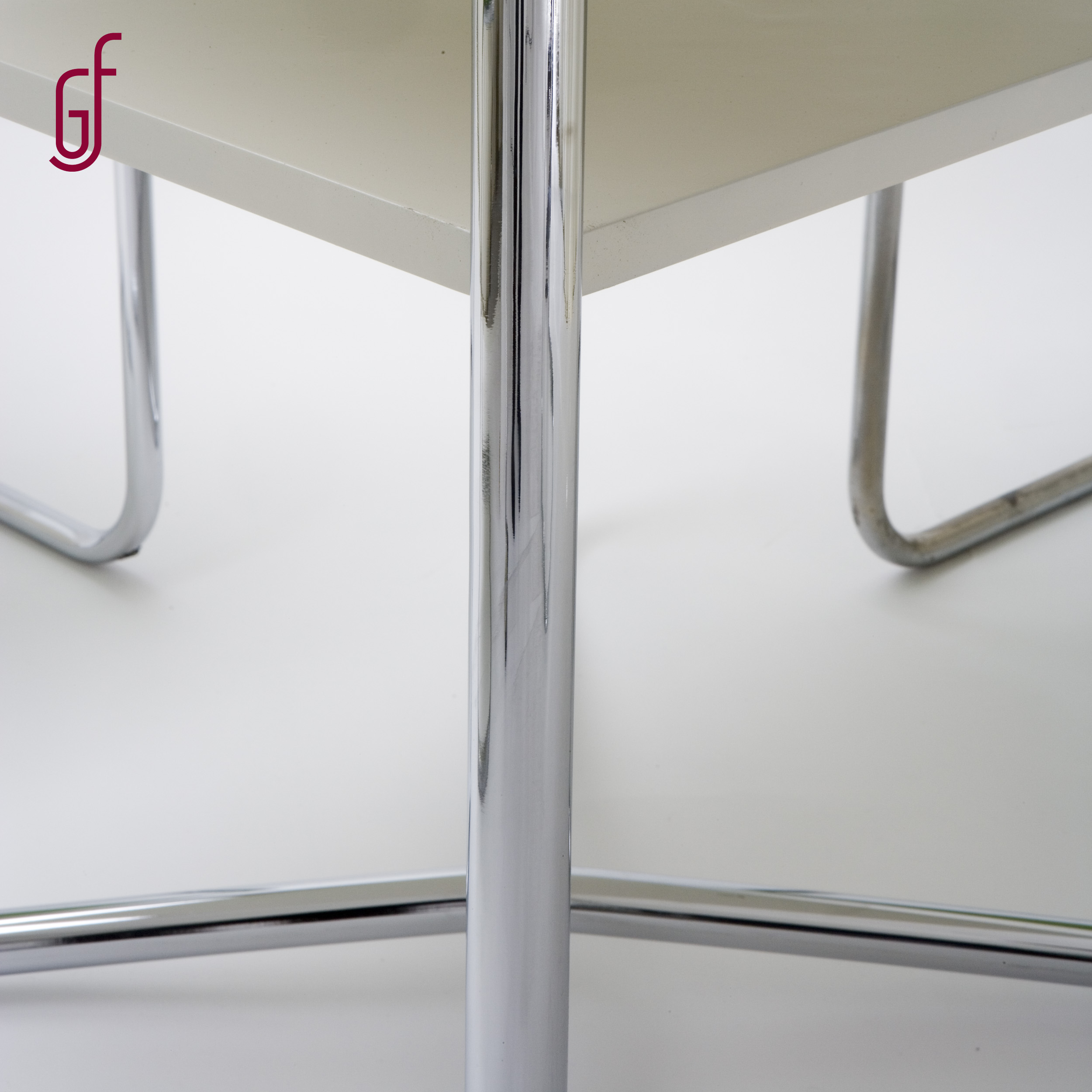 odborně restaurované originály, původní dřevo opraveno, lakováno v matném laku, původní trubkové konstrukce židlí bez područek a stolu nově galvanizována u ostatních žídlí vyleštěn původní chrom