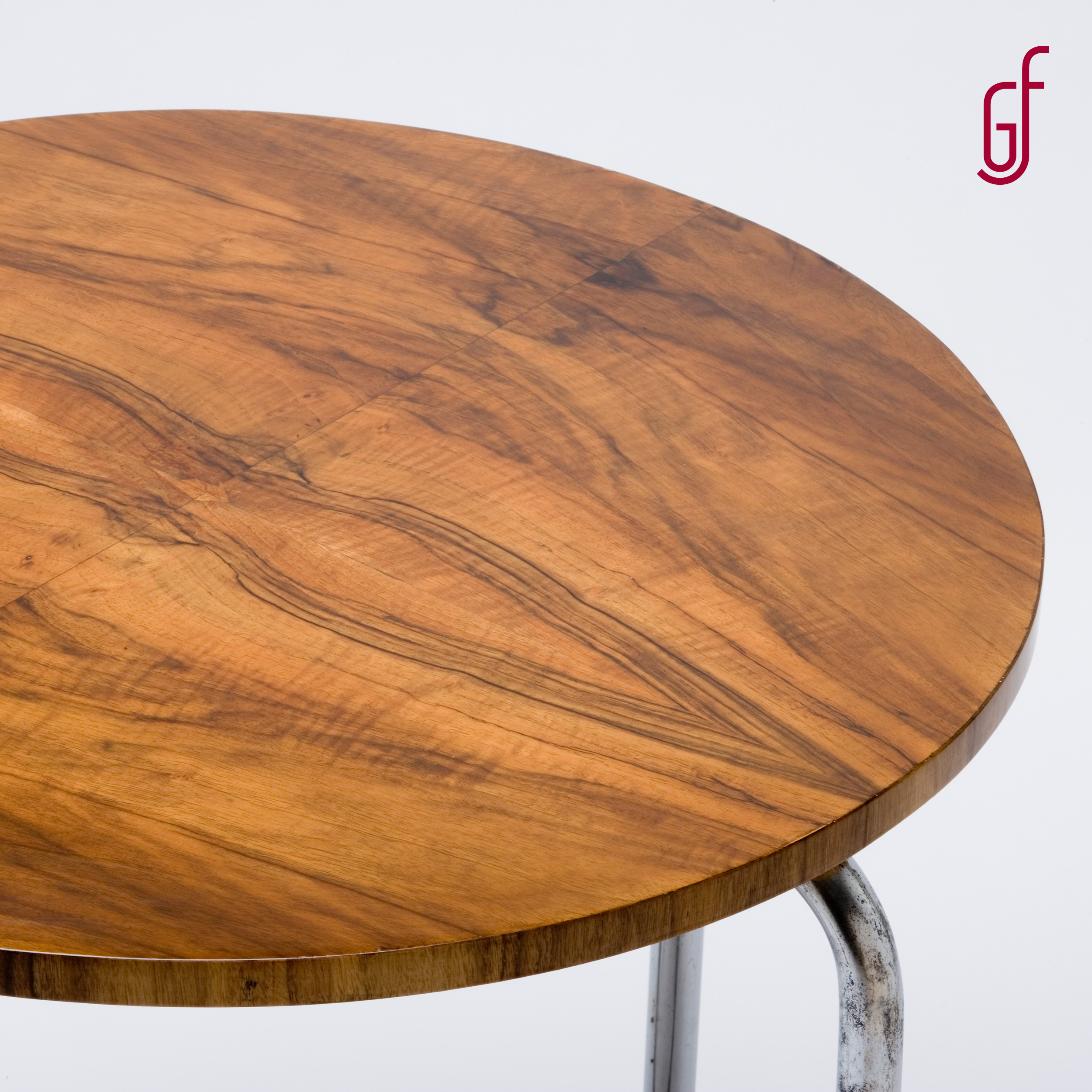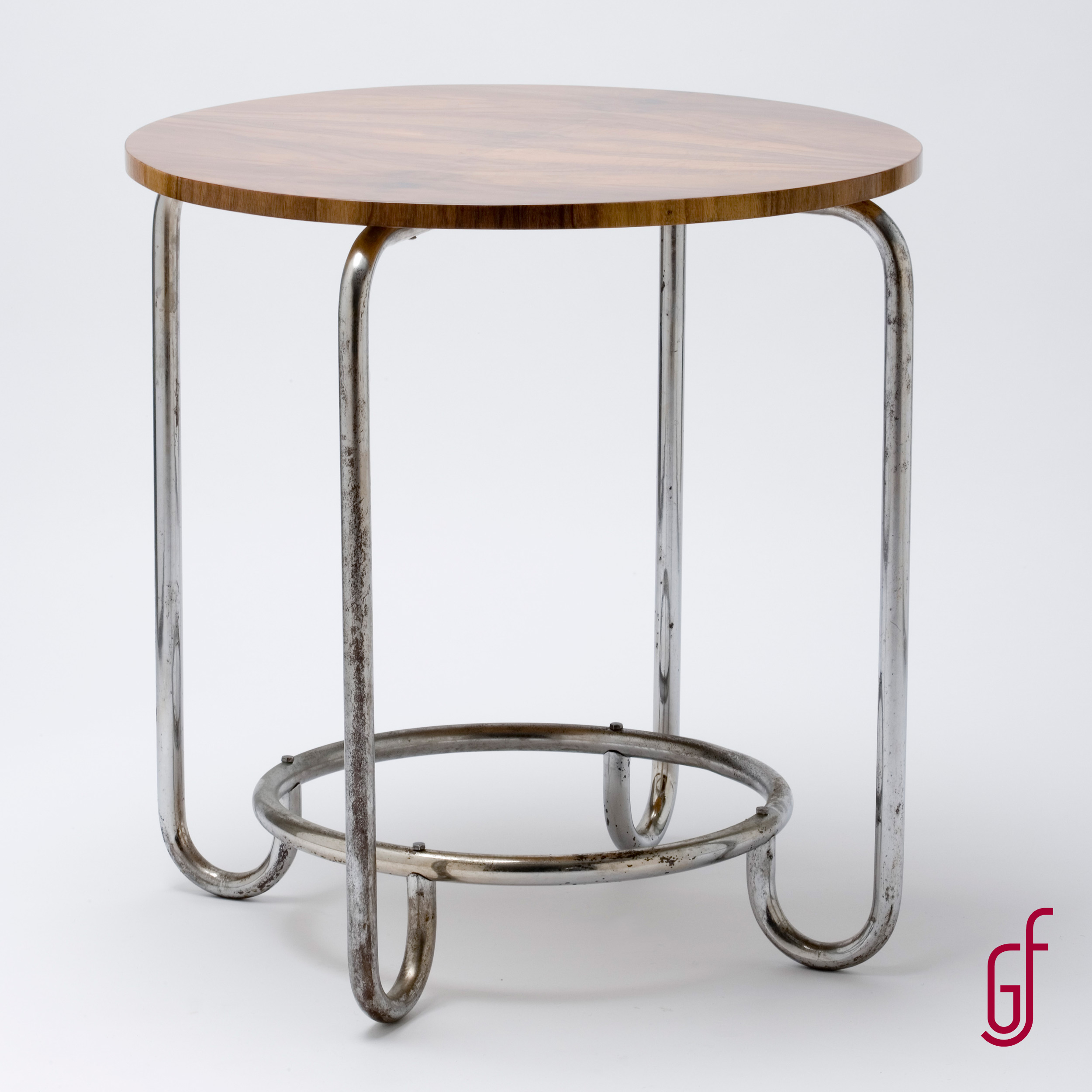 odborně restaurovaný originál, původní chrom vyleštěn, původní dřevo a dýha vyčištěna, povrch v šelakové polituře