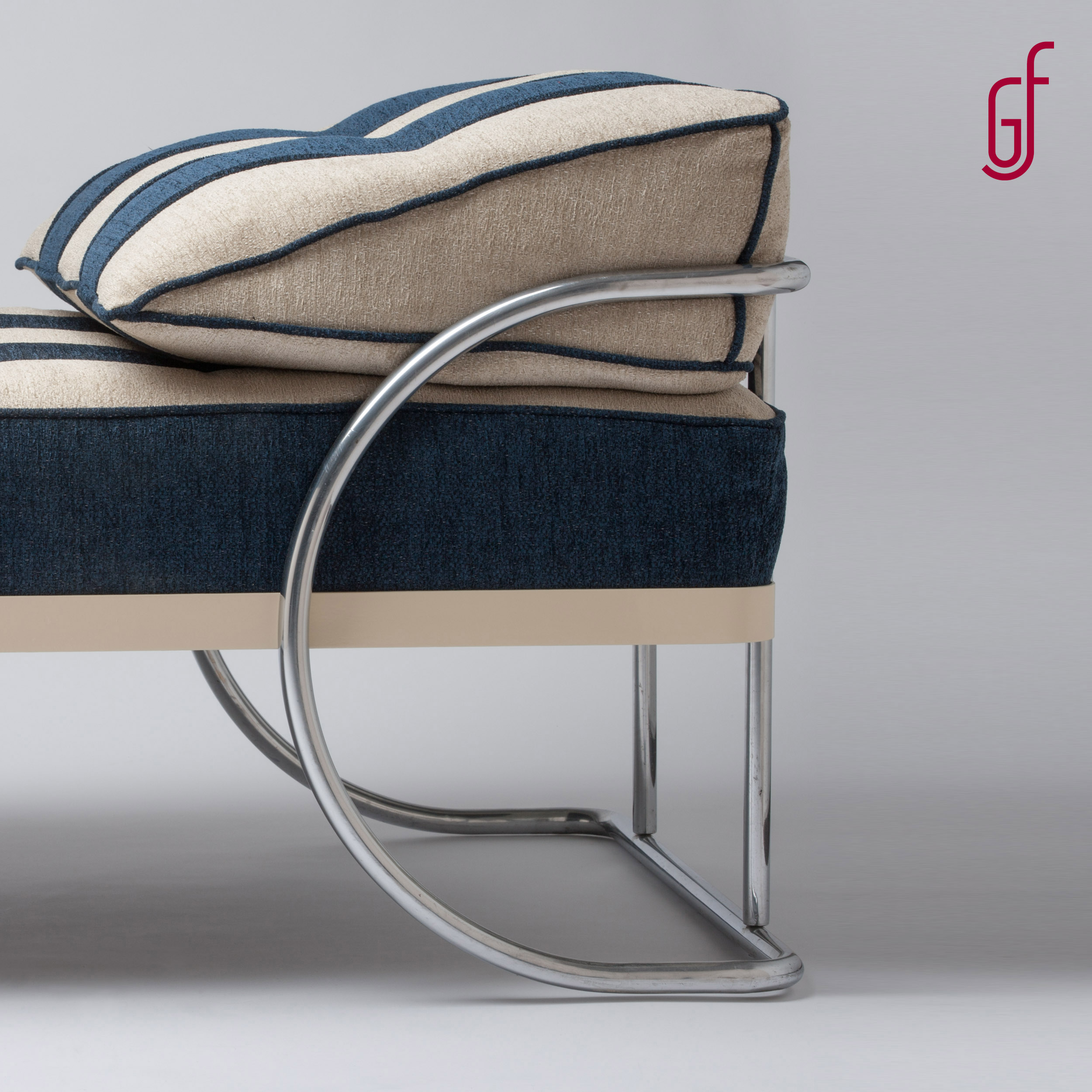 odborně restaurovaný originál, původní chrom odborně vyleštěn, nové klasické čalounění dle původního vzhledu včetně nové pérové výplně s kontrastní paspulí, lakováno do původního odstínu.